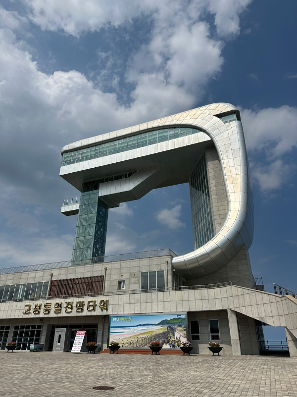 저 뒤에 보이는 D자형 건물은 2018년도에 새로 완공한 통일전망대이다.