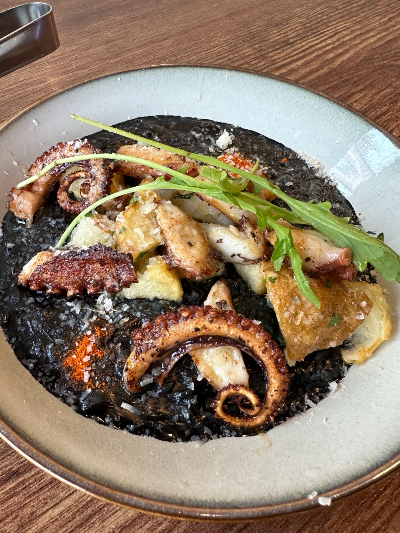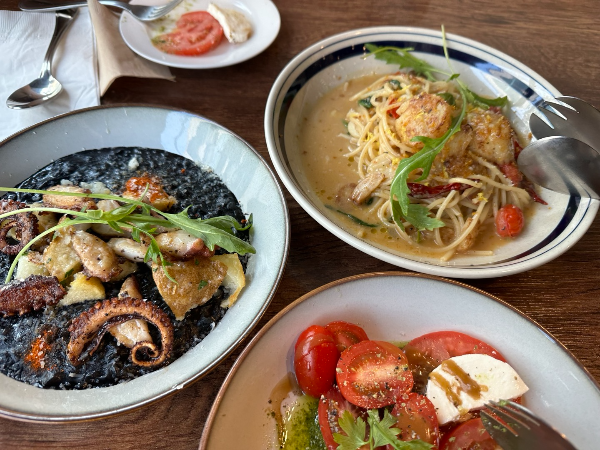 문어&먹물 리조토, 카프레제 샐러드, 관자 루꼴라 오일 파스타 이렇게 주문시켰다.