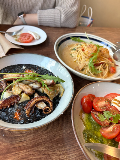 문어&먹물 리조토, 카프레제 샐러드, 관자 루꼴라 오일 파스타 이렇게 주문시켰다.