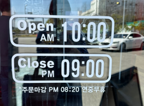 영업시간 : 매일 10시 ~ 21시 , 20시 20분 라스트오더