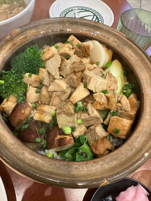 다양한 야채와 버섯 재료를 올려 만든 건강한 홍콩식 솥밥입니다.