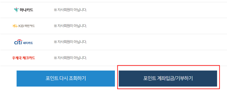 여기서 현금화를 하고 싶다면 포인트 계좌입금/기부하기를 선택하면 됩니다.