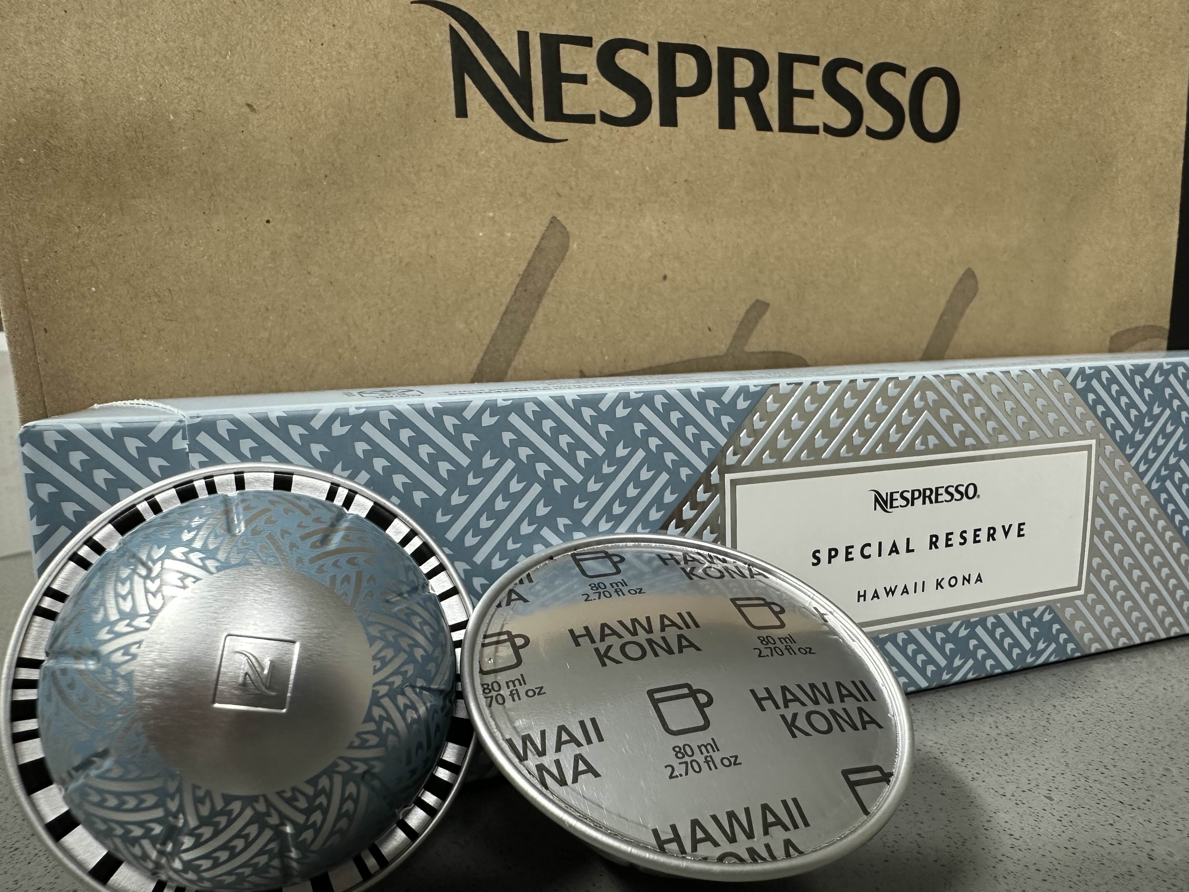 고급 커피의 대명사로 불린다. 하와이의 화산 토양에서 자라 풍부한 향미와 부드러운 질감이 특징이다. 이 특별한 원두를 네스프레소에서 버츄오 전용 캡슐로 출시했다니, 안 마셔볼 수 없어서 바로 구매했다.