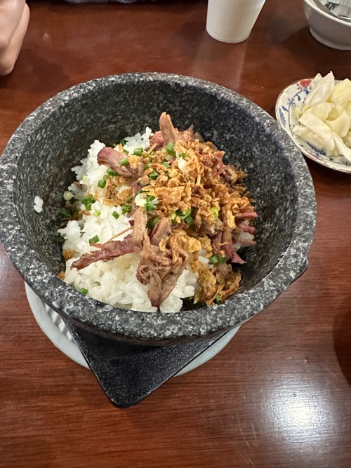 뜨거운 솥밥에 장조림과 간장을 섞어 눌러먹으면 누룽지가 별미이다!